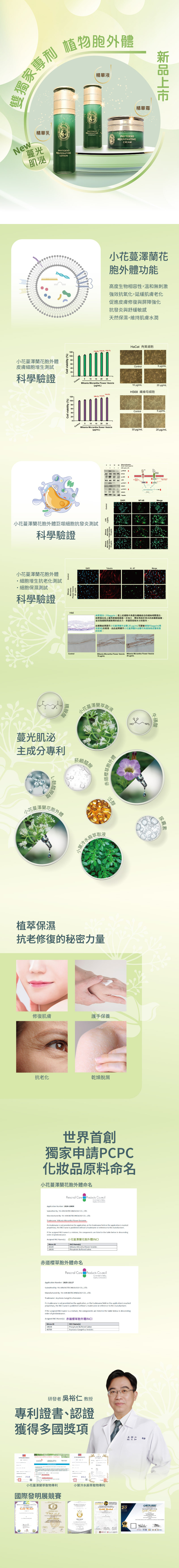 • 萃取自植物細胞外體,內含多重植物營養分子,保留細胞間傳遞修護訊息的活性分子。