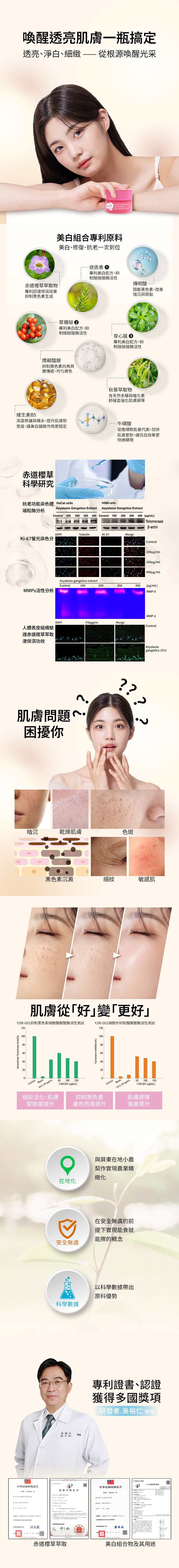 乾性肌膚護理首選-專為乾燥肌膚研發。添加獨家專利原料-*赤道櫻草萃取及*YJW美白複合物成分,可達到舒緩肌膚、嫩白肌膚、改善暗沉,強效鎖水保濕,給予肌膚深層滋養修護。