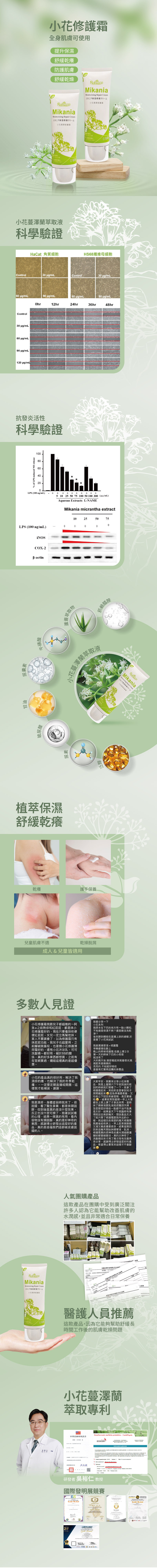 研發理念:以「小花蔓澤蘭」為元素,打造針對乾燥的手足與身體肌膚,提供潤澤、保濕、強化肌膚防護能力的乳霜,來舒緩與預防肌膚乾燥、乾裂與脫皮。